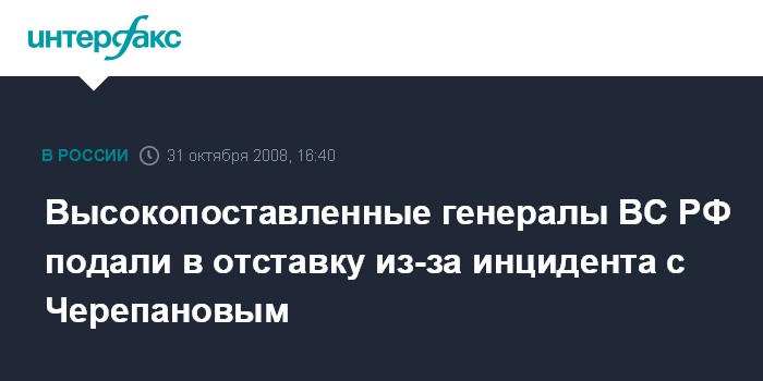 Высокопоставленные генералы ВС РФ подали в отставку из-за инцидента с Черепановым