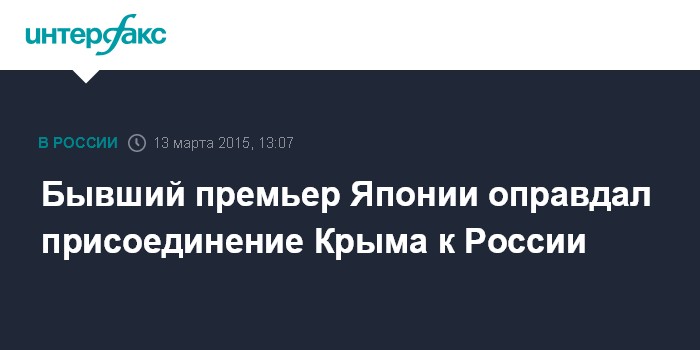 Бывший премьер Японии оправдал присоединение Крыма к России