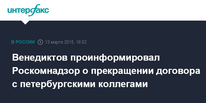 Москва. 13 марта. INTERFAX.RU - Главный редактор "Эха Москвы" Алексей Венедиктов сообщает, что отправил в Роскомнадзор уведомление о прекращении с 17 марта договора между радиостанцией и компанией, вещающей "Эхо Москвы" в Санкт-Петербурге.