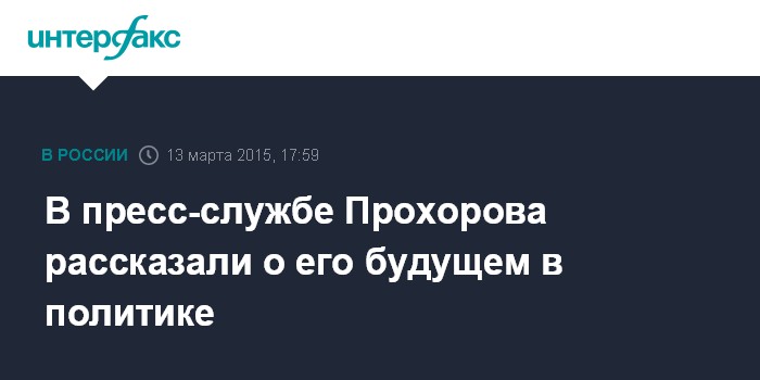 Москва. 13 марта. INTERFAX.RU - Предприниматель Михаил Прохоров после выхода из "Гражданской платформы" пока не планирует начинать новые политические проекты, сообщили в его пресс-службе в пятницу.