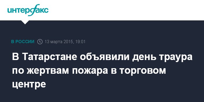 Москва. 13 марта. INTERFAX.RU - Президент Татарстана Рустам Минниханов принял решение объявить 14 марта днем траура в память о погибших при пожаре в торговом центре "Адмирал" в Казани, сообщается на сайте главы республики.