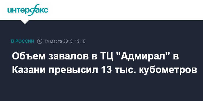 Объем завалов в ТЦ "Адмирал" в Казани превысил 13 тыс. кубометров