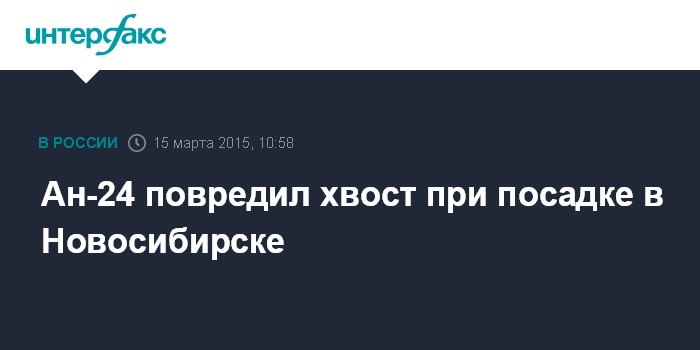 "Самолет Ан-24, выполнявший рейс Красноярск-Новосибирск, при посадке в результате соприкосновения со взлетно-посадочной полосой повредил хвостовую часть фюзеляжа", - сообщила она.
