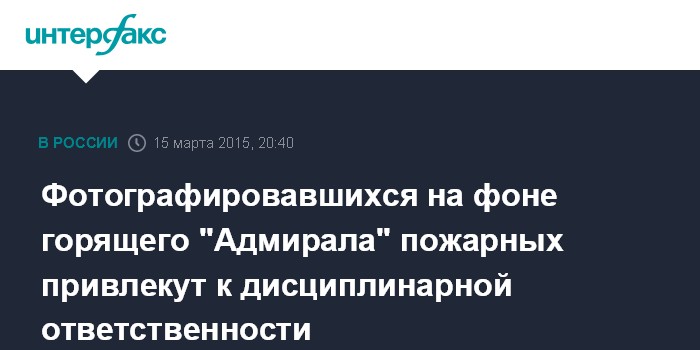 Фотографировавшихся на фоне горящего "Адмирала" пожарных привлекут к дисциплинарной ответственности