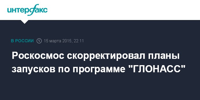 Москва. 15 марта. INTERFAX.RU - Роскосмос отказался от группового запуска трех спутников "Глонасс-М" для поддержания орбитальной группировки Глобальной навигационной системы, вместо этого в сентябре может состояться одиночный запуск навигационного спутника, сообщили "Интерфаксу" в воскресенье в космической отрасли.
