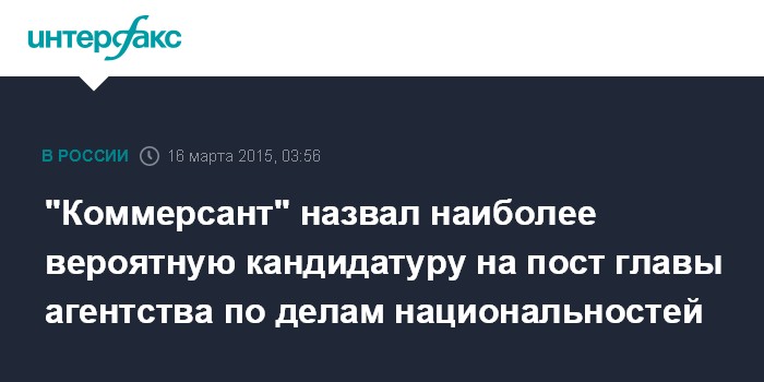 "Коммерсант" назвал наиболее вероятную кандидатуру на пост главы агентства по делам национальностей