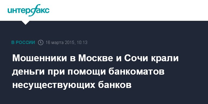 Мошенники в Москве и Сочи крали деньги при помощи банкоматов несуществующих банков