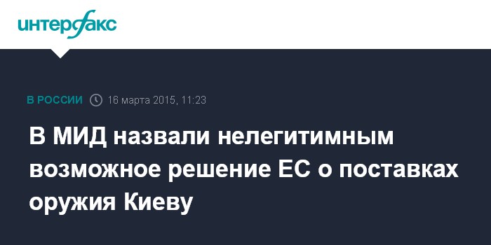 Москва. 16 марта. INTERFAX.RU - В Москве предостерегают ЕС от безответственного и нелегитимного шага, которым может стать решение о поставках вооружений на Украину.