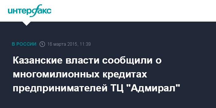Казанские власти сообщили о многомилионных кредитах предпринимателей ТЦ "Адмирал"