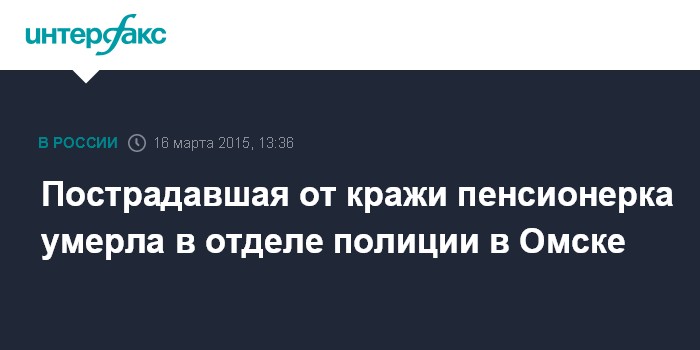 Пострадавшая от кражи пенсионерка умерла в отделе полиции в Омске