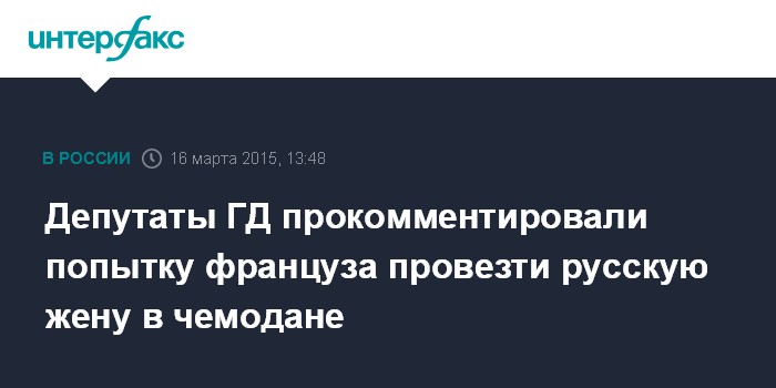 Как отметил глава комитета, пока в Думе обсуждаются вопросы стратегического партнерства России и ЕС, появилась информация, что французский гражданин пытался вывезти свою русскую жену в чемодане в Евросоюз, поскольку у нее были проблемы с документами.