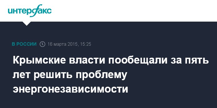 Москва. 16 марта. INTERFAX.RU - Крым станет энергетически независимым от Украины в течение пяти лет, считает глава региона Сергей Аксенов.
