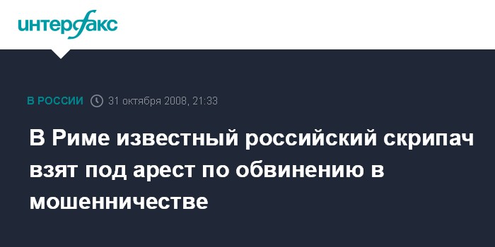 В Риме известный российский скрипач взят под арест по обвинению в мошенничестве