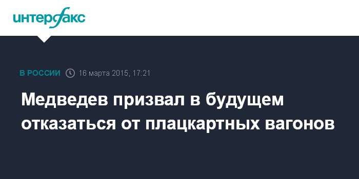 Москва. 16 марта. INTERFAX.RU - Глава российского правительства Дмитрий Медведев призвал со временем отказываться от старых электричек и плацкартных вагонов.