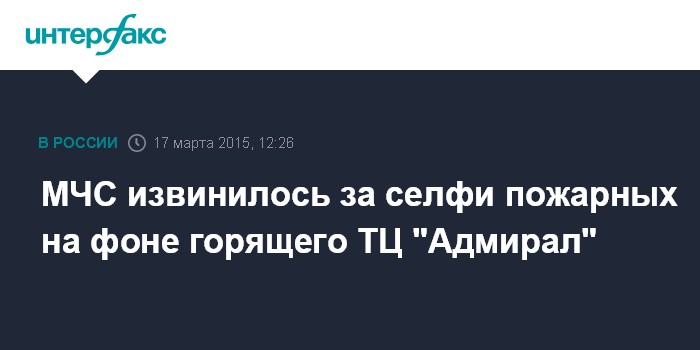Москва. 17 марта. INTERFAX.RU - МЧС России извинилось за селфи пожарных на фоне горящего здания торгового центре "Адмирал" в Казани.