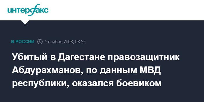 Убитый в Дагестане правозащитник Абдурахманов, по данным МВД республики, оказался боевиком