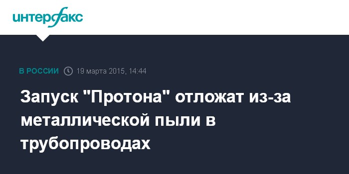 Запуск "Протона" отложат из-за металлической пыли в трубопроводах