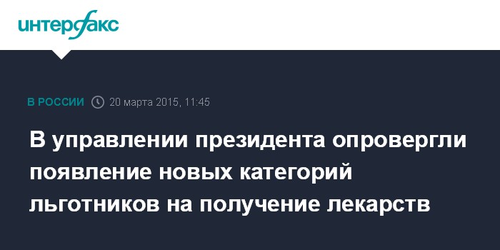 В управлении президента опровергли появление новых категорий льготников на получение лекарств