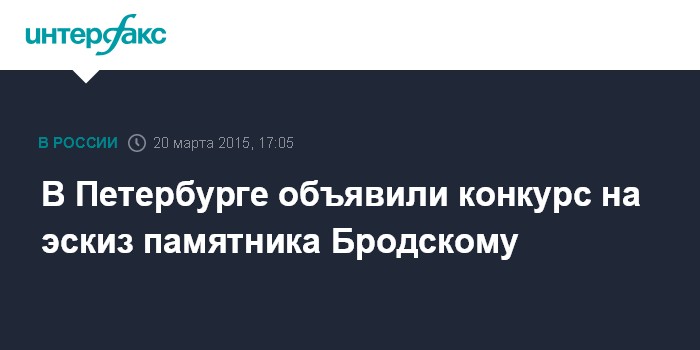 Москва. 20 марта. INTERFAX.RU - Власти Санкт-Петербурга объявили конкурс на создание эскизного проекта памятника поэту Иосифу Бродскому.
