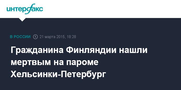 Гражданина Финляндии нашли мертвым на пароме Хельсинки-Петербург