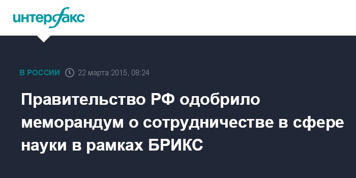 Правительство РФ одобрило меморандум о сотрудничестве в сфере науки в рамках БРИКС
