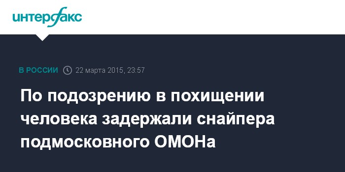Москва. 22 марта. INTERFAX.RU - Снайпер подмосковного ОМОНа задержан по подозрению в похищении человека. Об этом "Интерфаксу" сообщили в пресс-службе ГУ МВД России по Московской области.