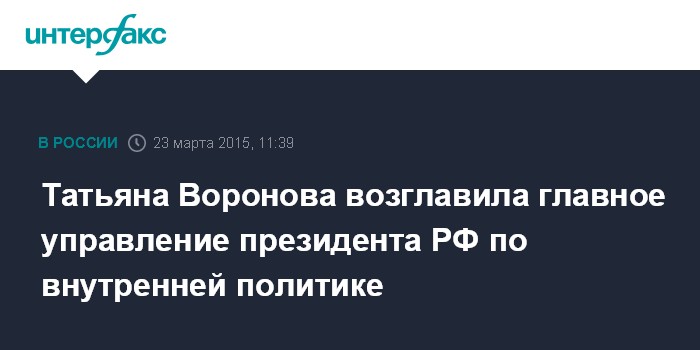 Татьяна Воронова возглавила главное управление президента РФ по внутренней политике