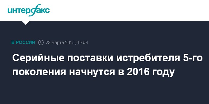 Серийные поставки истребителя 5-го поколения начнутся в 2016 году