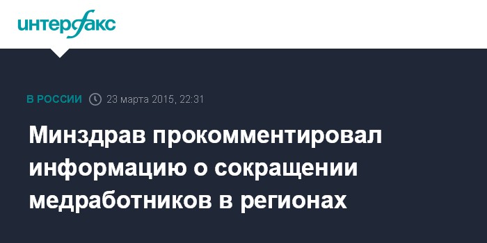 Москва. 23 марта. INTERFAX.RU - В Минздраве РФ прокомментировали данные о сокращении показателей обеспеченности медработниками в регионах, на основании которой якобы осуществляется сокращение медиков.
