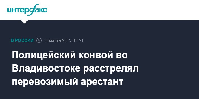Москва. 24 марта. INTERFAX.RU - Вооруженное нападение на полицейский конвой во Владивостоке совершил один из двух перевозимых арестантов, сообщили агентству "Интерфакс" в пресс-службе УМВД по Приморью.