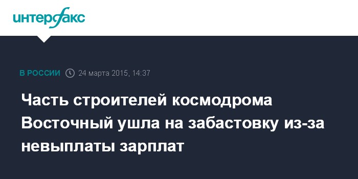 Москва. 24 марта. INTERFAX.RU - Группа строителей космодрома Восточный (Амурская область) во вторник приостановила работы в знак протеста из-за задержки заработной платы.