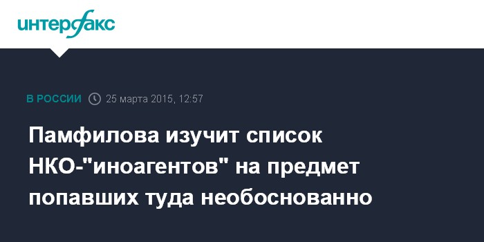 Москва. 25 марта. INTERFAX.RU - Уполномоченный по правам человека в РФ Элла Памфилова проведет ревизию списка НКО - иностранных агентов, утвержденного Минюстом РФ.
