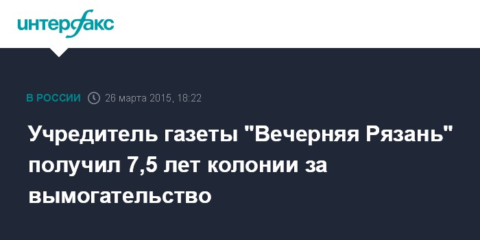 Учредитель газеты "Вечерняя Рязань" получил 7,5 лет колонии за вымогательство