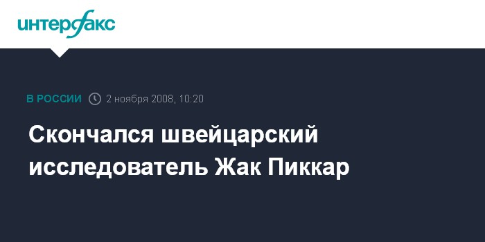 Женева. 2 ноября. INTERFAX.RU - Известный швейцарский изобретатель и исследователь морских глубин Жак Пиккар скончался на 87-м году жизни в Швейцарии.