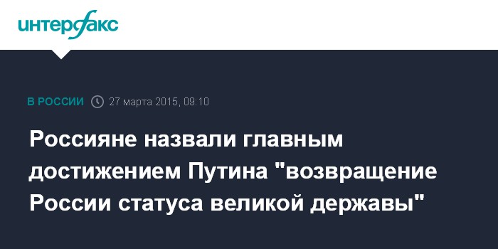 Россияне назвали главным достижением Путина "возвращение России статуса великой державы"
