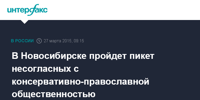 Москва. 27 марта. INTERFAX.RU - В день проведения в Новосибирске "молитвенного стояния в защиту чувств верующих" в городе пройдет пикет несогласных с консервативно-православной общественностью.