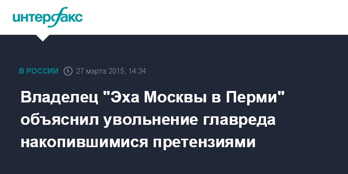 Владелец "Эха Москвы в Перми" объяснил увольнение главреда накопившимися претензиями