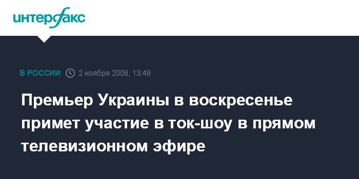 Киев. 2 ноября. INTERFAX.RU - Премьер-министр Украины Юлия Тимошенко в воскресенье вечером примет участие в ток-шоу "Майдан" на "5-ом канале".