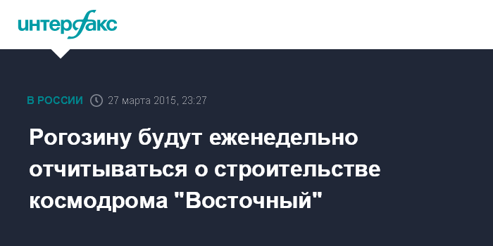 Москва. 27 марта. INTERFAX.RU - Вице-премьер РФ Дмитрий Рогозин сообщил, что со следующей неделе будет получать телеотчеты из штаба Спецстроя на космодроме "Восточный".