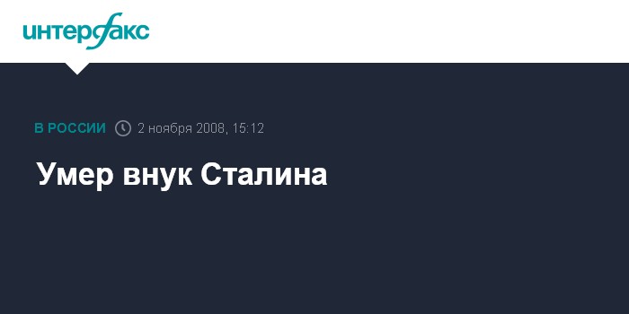 Москва. 2 ноября. INTERFAX.RU - В Москве скончался Иосиф Аллилуев - сын дочери Сталина Светланы от первого брака, сообщает в воскресенье Первый канал.