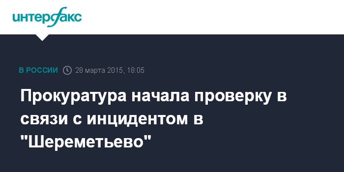 Москва. 28 марта. INTERFAX.RU - Прокуратура начала проверку по факту инцидента в аэропорту "Шереметьево", сообщила "Интерфаксу" официальный представитель Московской межрегиональной транспортной прокуратуры Наталья Брускова.