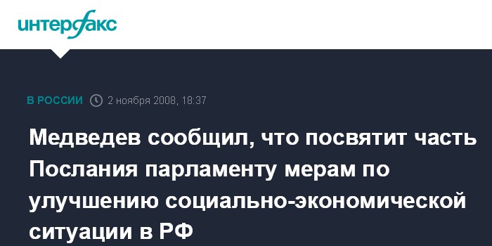 Медведев сообщил, что посвятит часть Послания парламенту мерам по улучшению социально-экономической ситуации в РФ