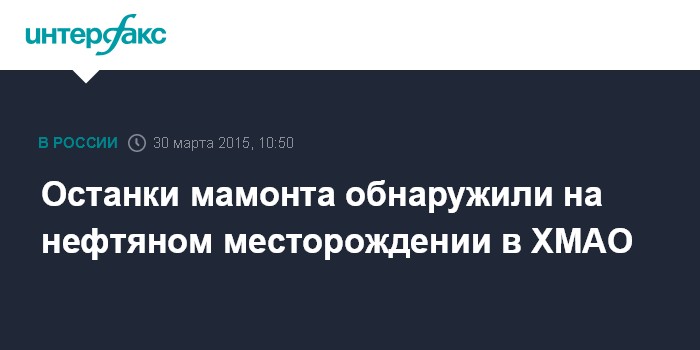 Москва. 30 марта. INTERFAX.RU - Останки мамонта обнаружены на одном из нефтяных месторождений Ханты-Мансийского автономного округа, сообщается на официальной странице компании "Роснефть" в социальной сети.