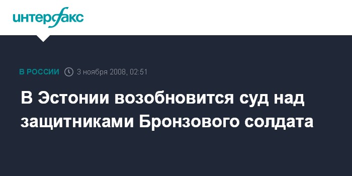 Таллин. 3 ноября. ИНТЕРФАКС - В Эстонии в понедельник возобновится прерванный в мае судебный процесс над защитниками памятника Воину- освободителю Таллина от фашистов.