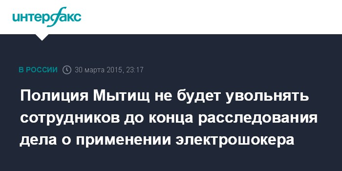 Москва. 30 марта. INTERFAX.RU - Руководство ГУ МВД по Московской области решило пока не увольнять сотрудников полиции Мытищ, задержанных по подозрению в применении электрошокера к обвиняемой в краже женщине.