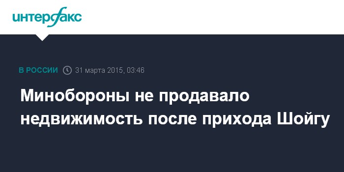 Москва. 31 марта. INTERFAX.RU - Минобороны России не провело ни одной сделки по продаже недвижимого имущества после назначения Сергея Шойгу на пост главы министерства, сообщил глава департамента имущественных отношений (ДИО) Минобороны Дмитрий Куракин.