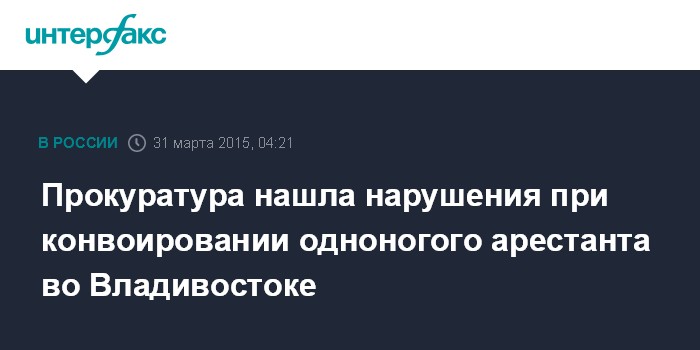 Москва. 31 марта. INTERFAX.RU - Прокурорская проверка выявила нарушения правил конвоирования одноногого арестанта Владимира Беспалова, расстрелявшего полицейский конвой во Владивостоке.
