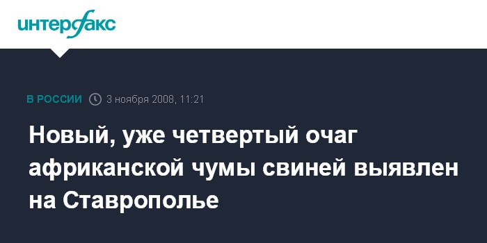 Ставрополь. 3 ноября. INTERFAX.RU - В селе Юца Предгорного района Ставропольского края выявлен новый очаг вируса африканской чумы свиней, четвертый по счету на территории региона.