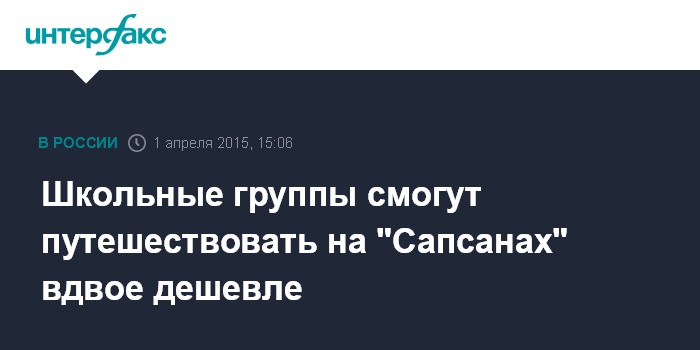 Москва. 1 апреля. INTERFAX.RU - Группы школьников смогут путешествовать на поездах "Сапсан" с 50-процентной скидкой, сообщает ОАО "РЖД" в среду.