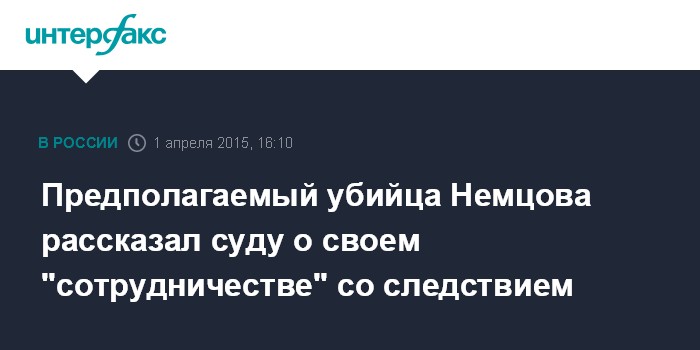 Ранее представитель СК заявил, что именно признательные показания Дадаева и его активное сотрудничество со следствием дают основания считать всех пять обвиняемых причастными к убийству Немцова. При этом адвокат Дадаева Иван Герасимов опроверг информацию СКР о сотрудничестве своего подзащитного со следствием.